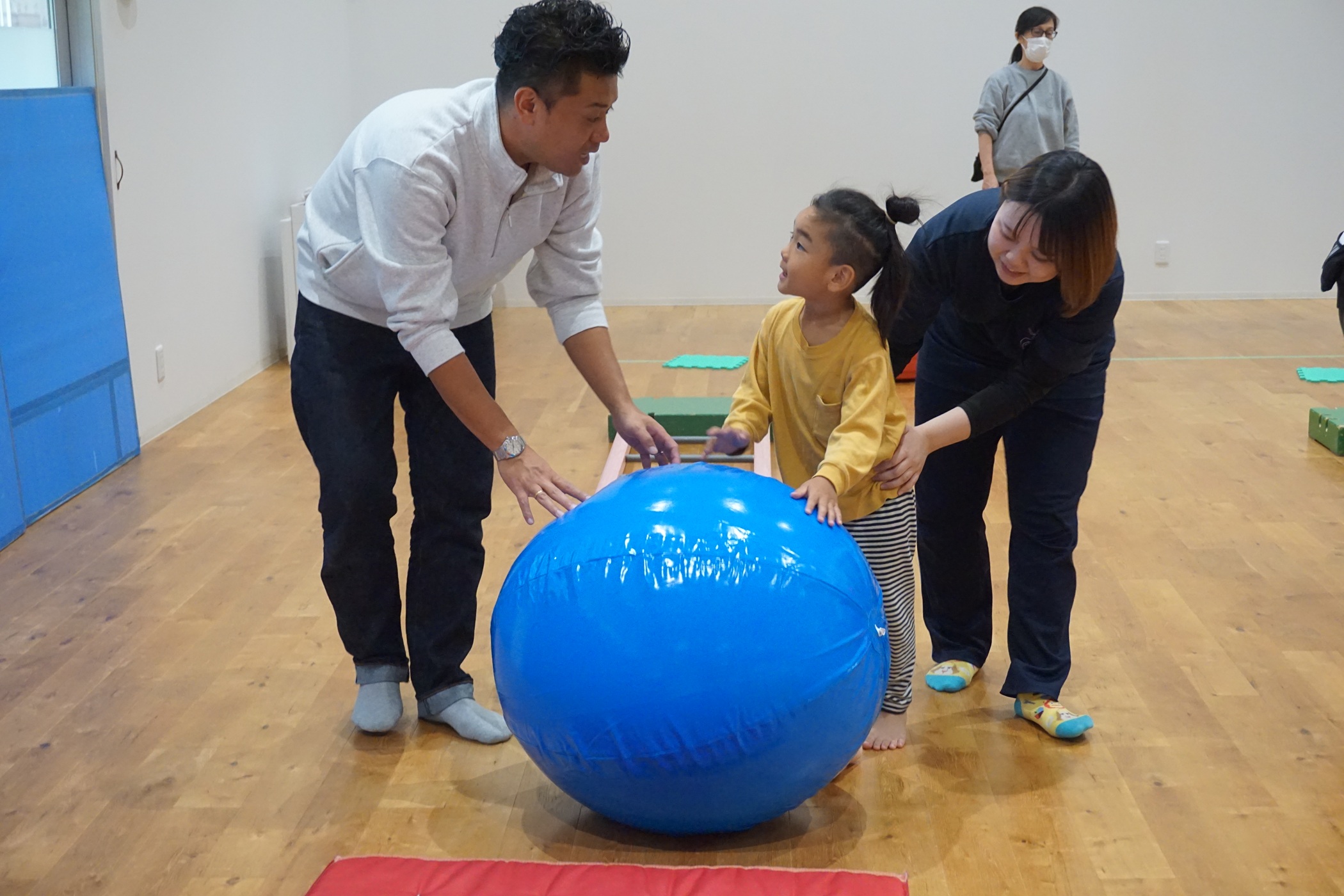 実際に療育で使用している粗大遊具や個別課題を、保育士の方々にも実際に