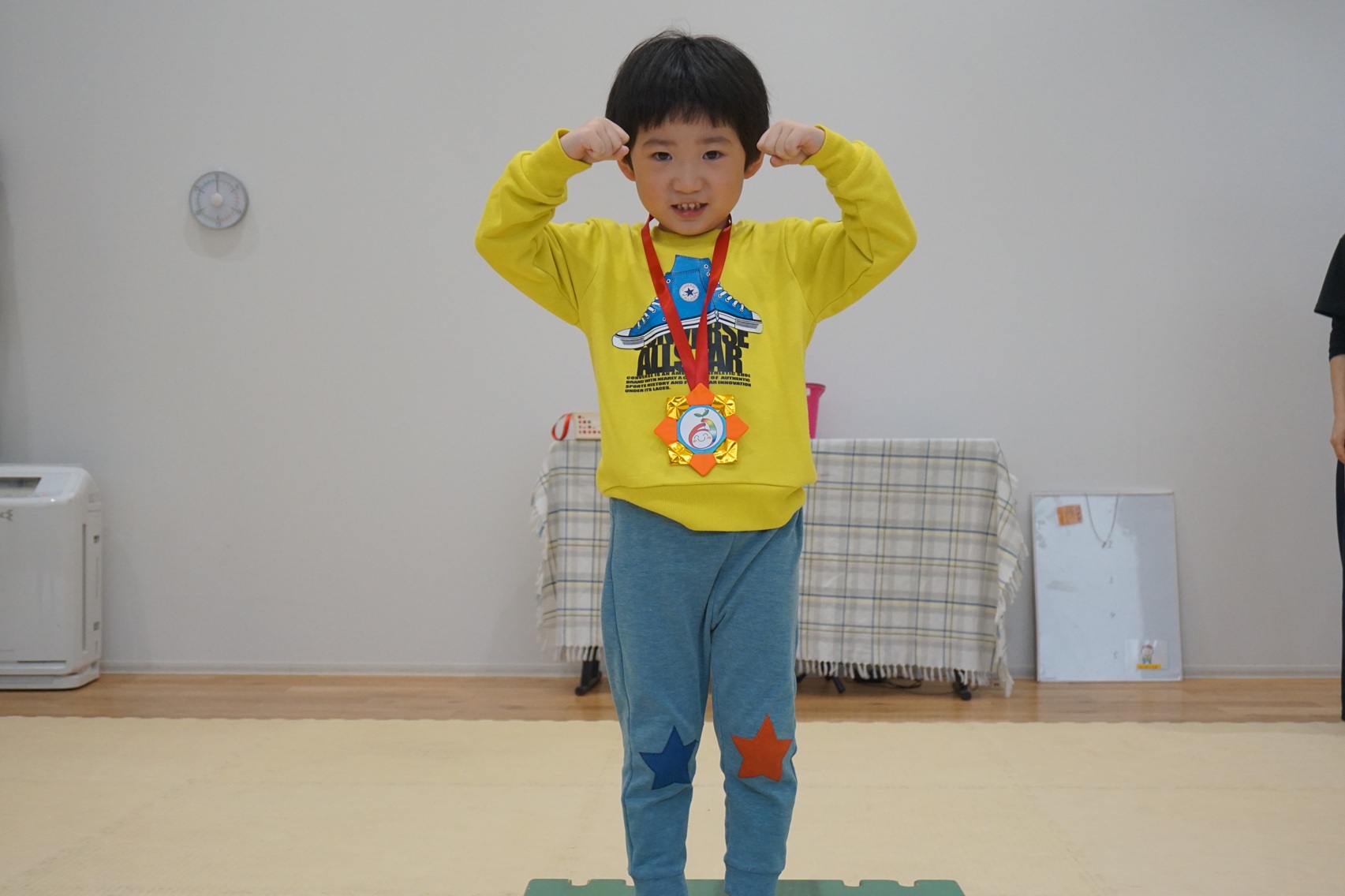 みんな大満足で、メダルをもらってポーズをとる姿は